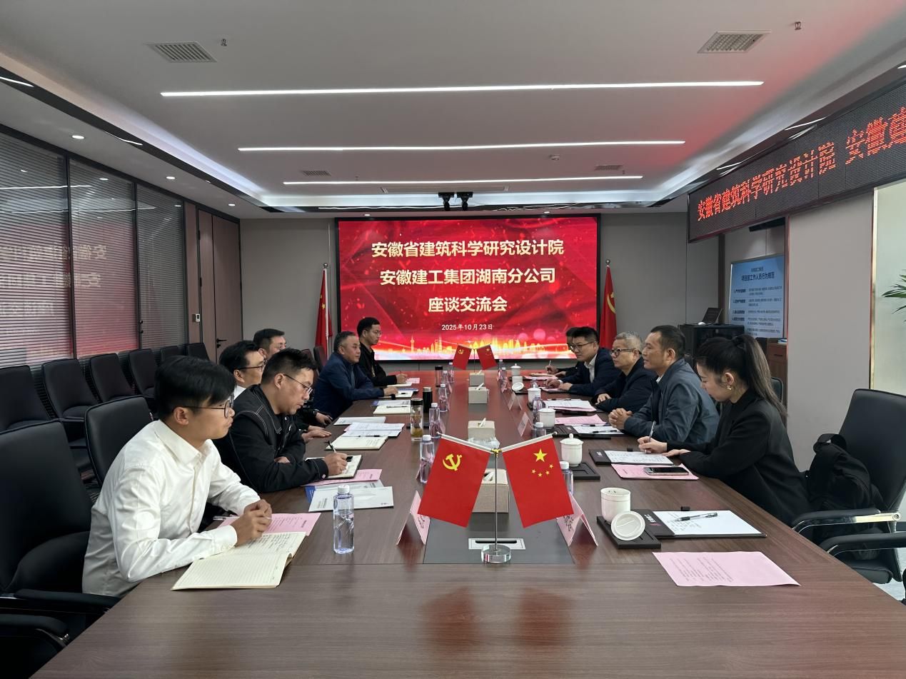 10月23日下午,安徽省建科院黨委委員、副院長徐從廣率隊拜訪安徽建工集團湖南分公司,安徽建工集團湖南分公司支部書記、副總經理(主持工作),建工水利黨委委員、副總經理陳浩熱情接待并舉行工作會談。